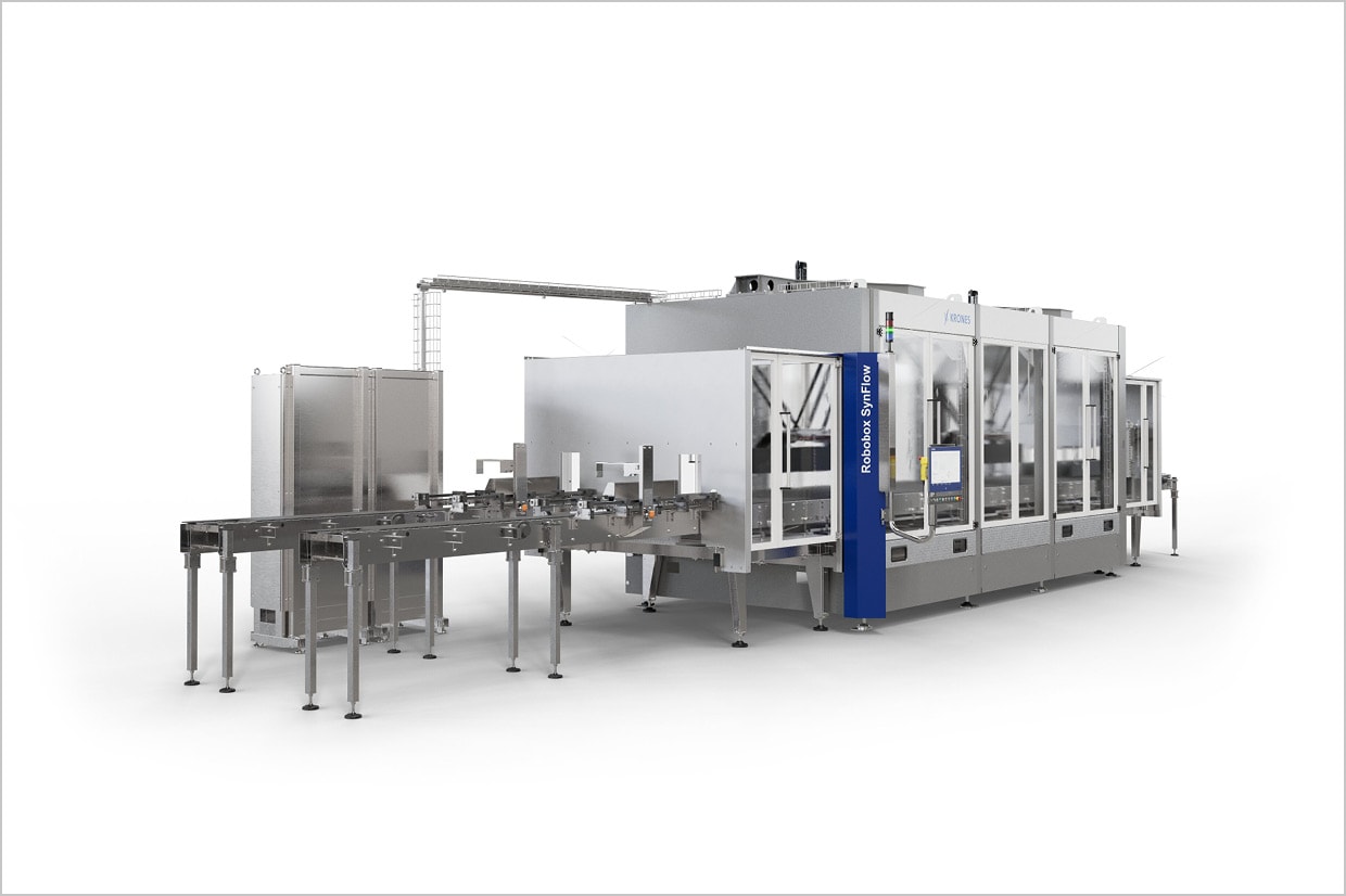 在杜塞尔多夫,克朗斯还将展示一项创新的容器分配解决方案。我们首次在这里采用机器人技术--这为进入包装机的容器提供了特别灵活、轻柔的输送方式。一台并联驱动的机器人将单道或双道容器流精确分配到三至九个通道--适用于所有常见的容器类型。 我们的现场专家随时准备为您解答关于全新 Robobox SynFlow 分拣系统的任何疑问。