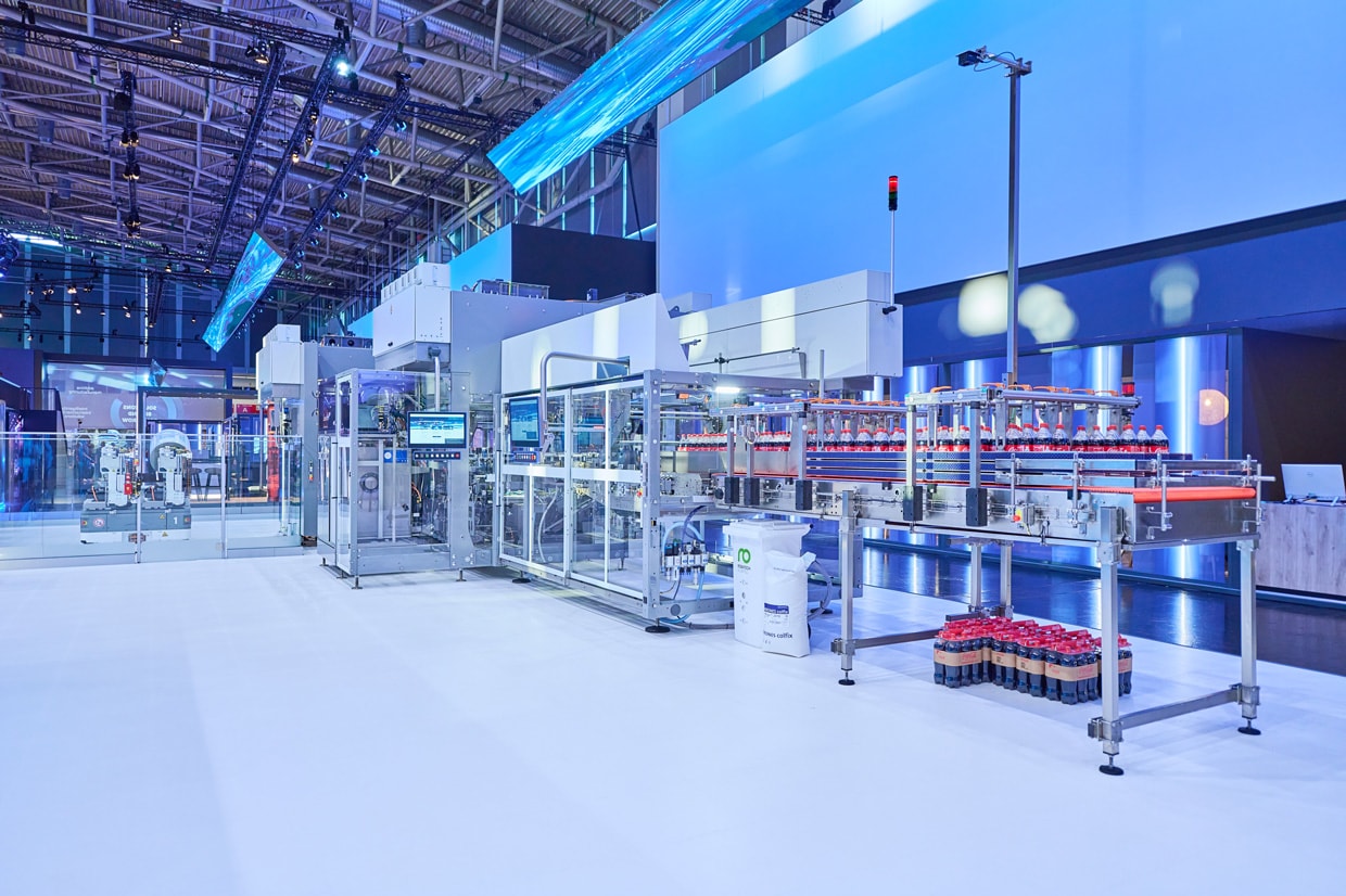 我们展台的亮点无疑是Variopac Pro--它将在现场进行实时演示,展示如何在传统一次性包装机上生产资源节约型包装。在可持续性方面,这些 LitePac顶部捆带式包装表现出色,因为它们仅通过一个纸板夹和一条由可再生原材料制成的箍带就能将1.5升PET瓶固定在一起--这是传统热缩膜包装的替代方案。LitePac Top方案不仅可以用于大容量PET瓶,也适用于玻璃瓶和易拉罐包装,克朗斯也将在interpack展会上展示这些应用。